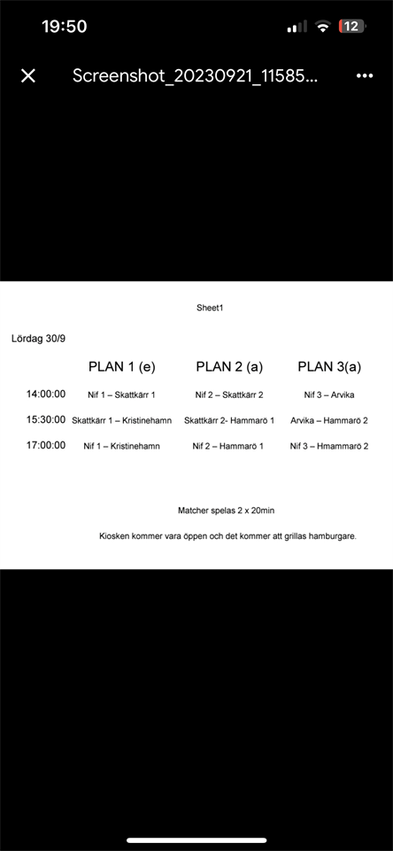 Länk Till Kick On Cup 2023 För er föräldrar kommer här info som kan vara bra att ha inför cupen nästa helg. Vi är fyra ledare som åker ner i varsin bil, men behöver veta om det är någon förälder som ska följa med alternativt kan tänka sig att köra. Vi behöver vara 6 bilar totalt för att alla ska komma ner säkert plus få med all packning. Skriv i kommentaren om ni åker på fredag alternativt kan köra ner till Tidaholm. Kommentera gärna också om ni kommer att vara där på söndag för att kunna planera hemfärd. Det är första gången vi åker på en cup på hösten, så det är viktigt att tänka på att packa utifrån väderlekar. Det kan bli blött och då behövs ombyte så de inte blir kalla. Däremot har vi gjort några cuper nu så vi vill redan innan påminna om våra ”regler”. - Sömn (Vi respekterar varandra när det ska sovas) Förra cupen var det lite stökigt första natten, så prata gärna med era grabbar innan om det. Det är dessutom två tidiga morgnar så de kommer behöva sömn för att orka spela. - Ätbart Inget godis / snacks innan middag har ätits för dagen och sen i lagom mängd. Gäller även på fredag. Däremot är det jättebra om de får i sig frukt / knäcke / bars mellan matcherna. Vi ska försöka se till att det finns. - Spelupplägg Vi kommer rulla spelare utifrån matchsituationer. Det kan vara ork, energi och dagsform som avgör, men även positivitet / "pepp" och så vidare. Så alla kommer inte spela lika mycket, men det är killarna medvetna om. Packningslista: - Gott humör !! - Matchställ, gärna extra strumpor om man har. - Fotbollsskor & benskydd - Två vattenflaskor för en kommer garanterat försvinna. - Träningskläder, gärna från föreningen om man har. - Gympaskor att gå i mellan matcher - Toalettartiklar, gärna en extra handduk. - Underkläder - Underställ x 2 - Jacka - Vanliga kläder. (Varma) - Regnkläder - Luftmadrass (max 75 cm bred) - Sovsäck & kudde - Telefonladdare och gärna förlängningssladd. - Galge - Väska att packa inför match, skor, benskydd, ombyte, handduk, etcetera. Är det någon som behöver medicin eller annan viktig info så får ni gärna informera oss ledare innan. Vi kommer att bo på Rudbecksgymnasiet (Länk till Google Maps) Alla måltider kommer att ätas på Rosenbergsskolan (Länk Till Google Maps) Det är fyra olika arenor som vi kan spela på. Transport mellan planer och skolan där maten serveras klarar vi fyra ledare av. Länk till anläggningar Kick On Cup. Dusch sker på respektive anläggning vi spelat på, ej duschmöjlighet på skolan vi bor på. Agenda: Fredag: - Vi samlas vid Vårt Hus 16.00 - (en bil checka in på Ulvesborg (UL) - Middag: 18.45 Rosenbergsskolan - Incheck Rudbecksgymnasiet Lördag: - Frukost kl. 07.45 Rosenbergsskolan - avfärd till Vretens IP (VR) - 09.20 match Skattkärrs IF - Fortuna FF svart (spelplats VR1) - Mellanmål / energipåfyll - 11.50 match Ängelholms FF Blå - Skattkärrs IF (spelplats VR1) - Lunch 13.30 Rosenbergsskolan - Avfärd Ulvesborg (UL) - Match 16.00 Skattkärrs - Husqvarna FF 1 (spelplats UL4) - Middag 17.30 Rosenbergsskolan Söndag: - Frukost 07.15 Rosenbergsskolan - 08.30 Kvalmatch till A, B, C eller D slutspel - Slutspel...... - Preliminär Lunchtid 12.15 Rosenbergsskolan - Lagavslutning Länk till Spelschema och Resultat Glöm ej att kommentera om ni åker hem på söndagen med bil, samt hur många platser som finns i bilen för att säkerhetställa att alla spelare tar sig hem + eventull möjlig skjuts på fredag. Vi är så pepp för att avsluta fotbollssäsongen på bästa vis med en helg tillsammans !! // Ledarna